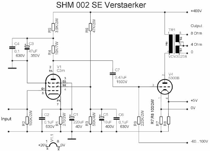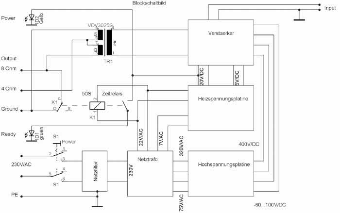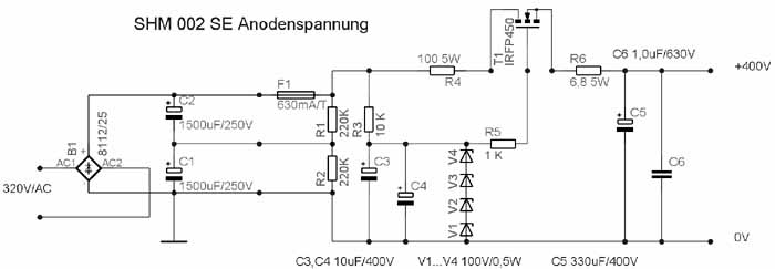 Anodenspannung ist auf 400 Volt festgelegt und ebenfalls geregelt und stabilisiert.