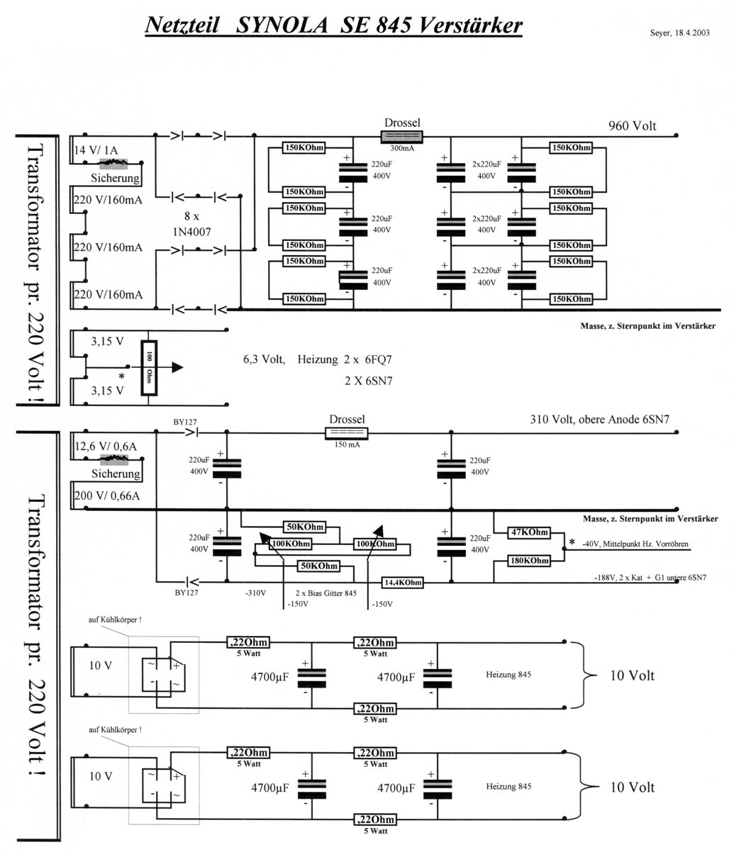 Die DC Gleichr. der beiden 845er ergab sich dadurch, daß die Teile von der 2A3 her vorhanden waren und Dank