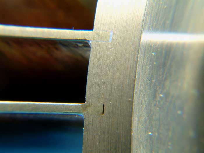 Die Messing-Grundplatte wurde an den entsprechenden Stellen mit einem 1mm dicken Fräser 3 mm tief eingefräst.
