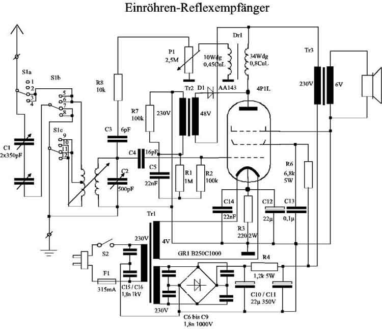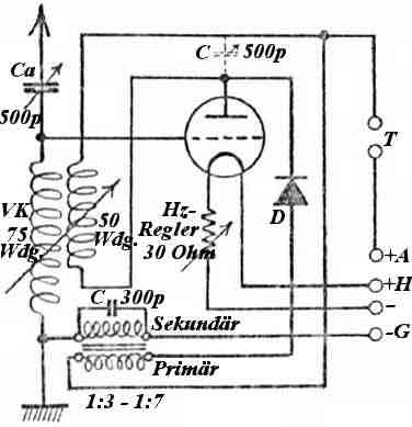 Bildmitte links einen hochstehenden Keramikkondensator - dieses ist der Gitterankoppelkondensator C4 mit 16 pF.