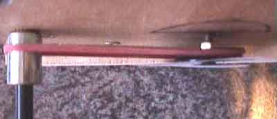 Die Skala wird mit einem einfachen Flachgummi angetrieben, im folgenden Bild erkennt man die Scheibe, auf der die Skala