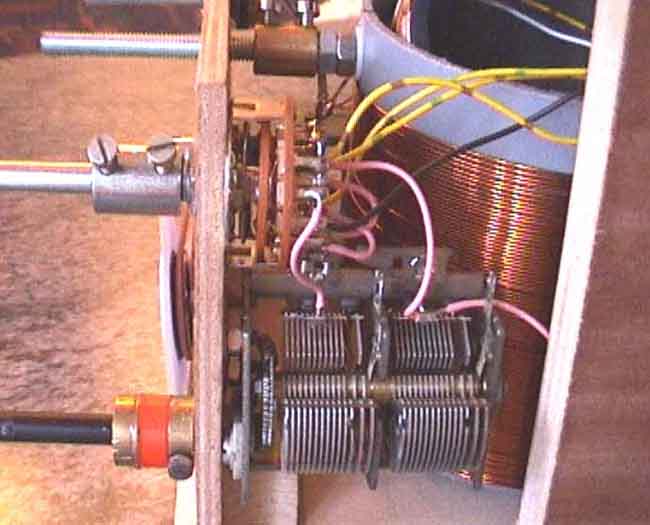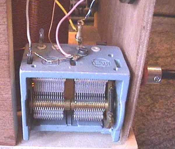 abgehende, hochstehende Keramikondensator ist der C3 mit 6 pF. Rechts außen erkennt man nochmals den Skalenantrieb.