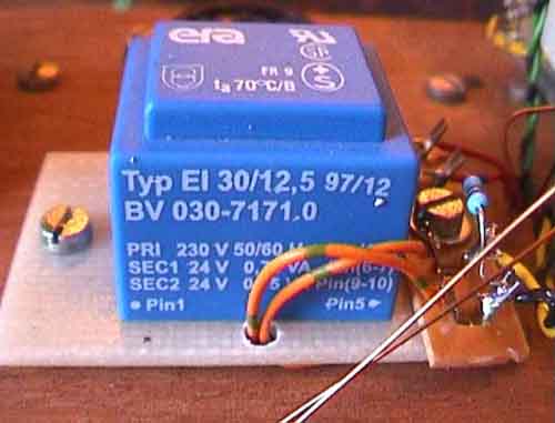 Auf dem folgenden Bild erkennt man links oben gut den verwendeten Netztrafo.