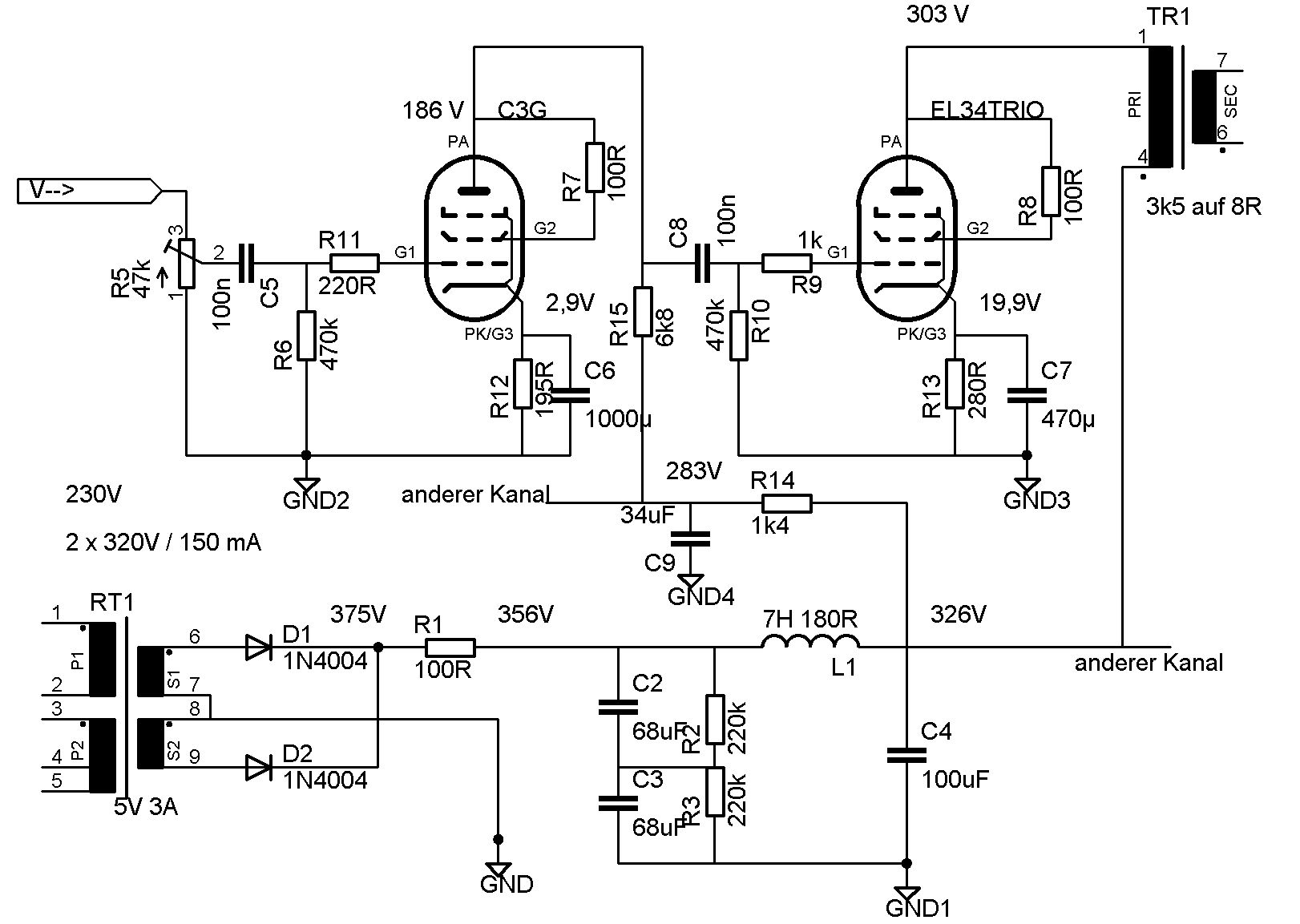 sollte. Wenn ausreichend Anodenspannung vorhanden ist, sind für R15 8k2 möglicherweise günstiger.