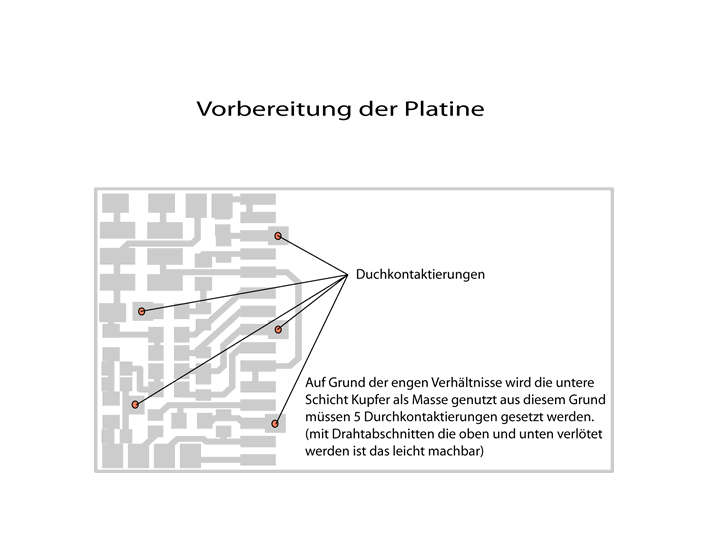 Die Durchkontaktierungen sollten als erstes hergestellt werden, man nimmt einfach einen Drahtabschnitt und schiebt ihn