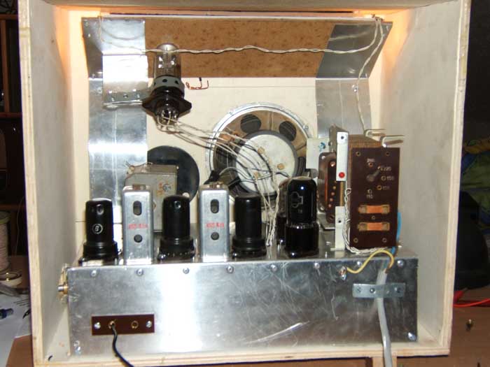 Unterm Chassis wurde einfach drauf los gebastelt. Trotzdem funktioniert das Radio gut.