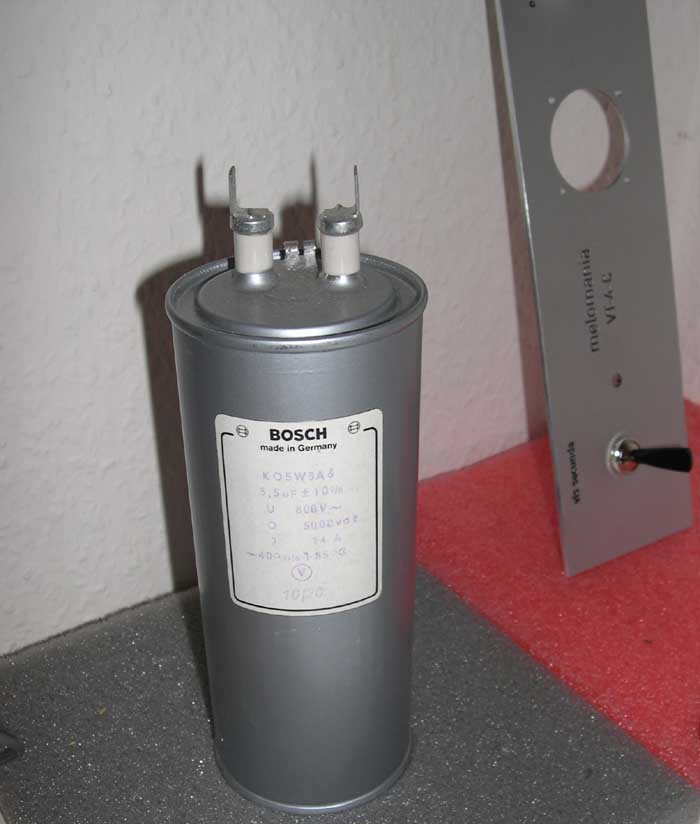 Als Ladekondensator habe ich einen alten 5,5uF MP-Boschkondensator von Jan Wüsten gewählt und gehe damit schon an