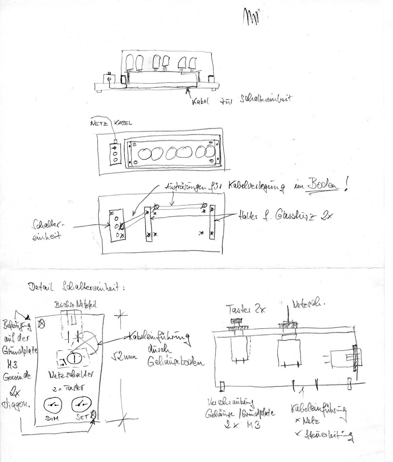 Das sieht jetzt schon ein wenig besser aus. Nun werden die Kabel im Boden zu der Bedieneinheit verlegt und dort verdrahtet. Diese enthält jetzt: