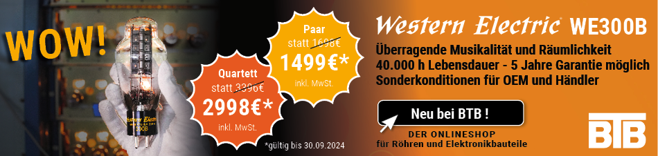 Seit Mai 2024 ist BTB Elektronik offizieller Röhren-Fachbetrieb, der als europäischer Vertriebspartner von Western Electric Röhren aus den USA fungiert.