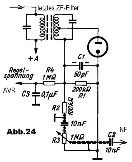 Aus diesem Grunde kam man auf die Idee, die Regelspannungserzeugung von der Gewinnung der NF zu trennen. Abb.25 zeigt so