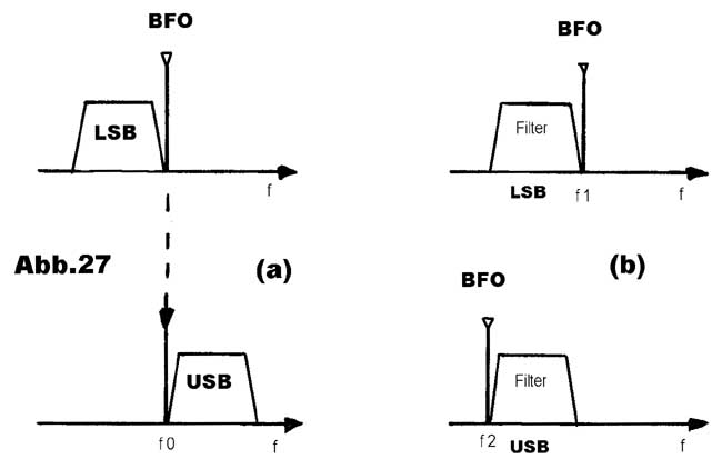 Die 2. Möglichkeit zeigt Abb.27b. Nur ein (!) SSB-Filter wird für beide Seitenbänder