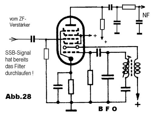 In Abb.28 ist ein Produkt-Detektor mit einer Oktode im Prinzip angedeutet. Anstatt des gezeichneten L-C Kreises, wird in
