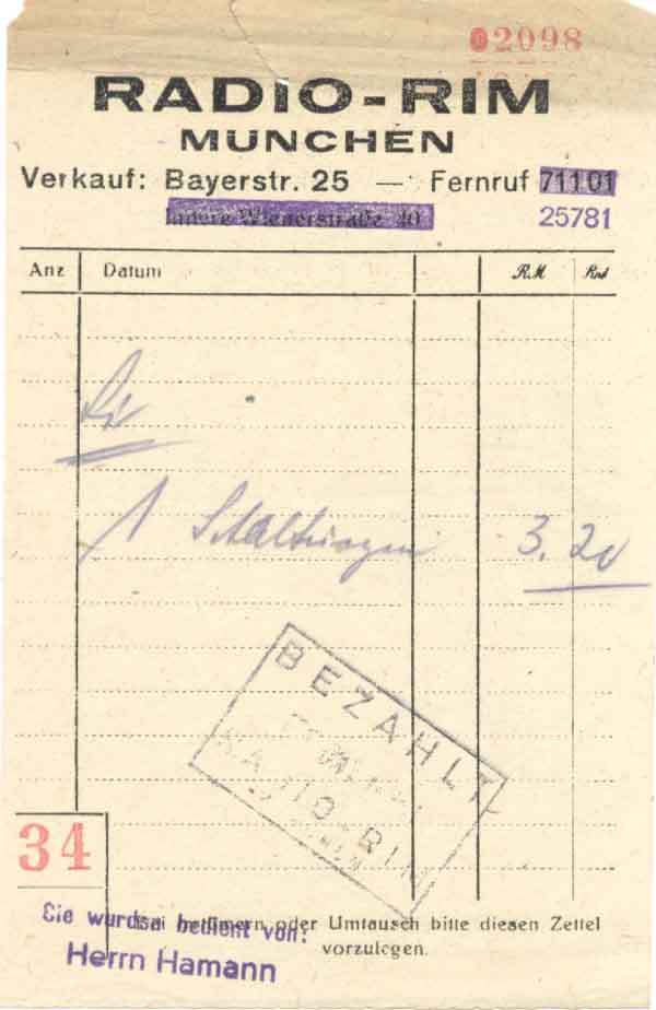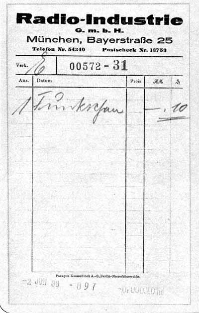 Quittung am 2. Juni 1938 ausstellte - Radio-Industrie. Hieraus enstand Radio RIM ... !