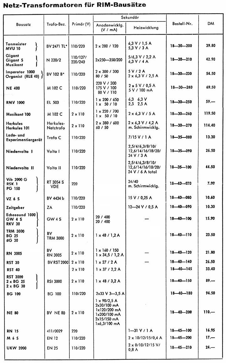 In den diversen RIM-Bausätzen wurden immer wieder - den Anspüchen entsprechende - Netztrafos verwendet. Ich