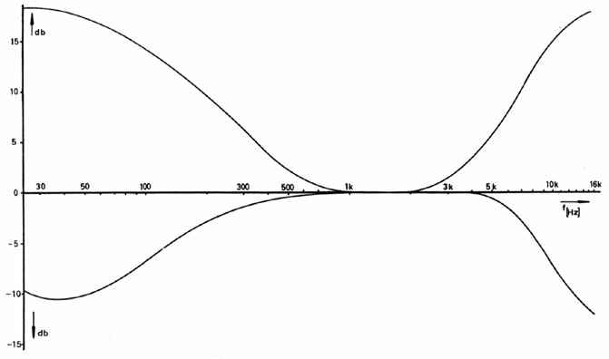 Die Klangregelstufe selbst wurde so ausgelegt, daß sowohl die hohen als auch tiefen Frequenzgebiete unabhängig