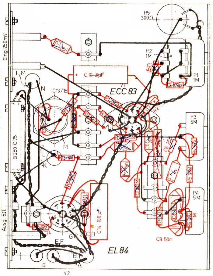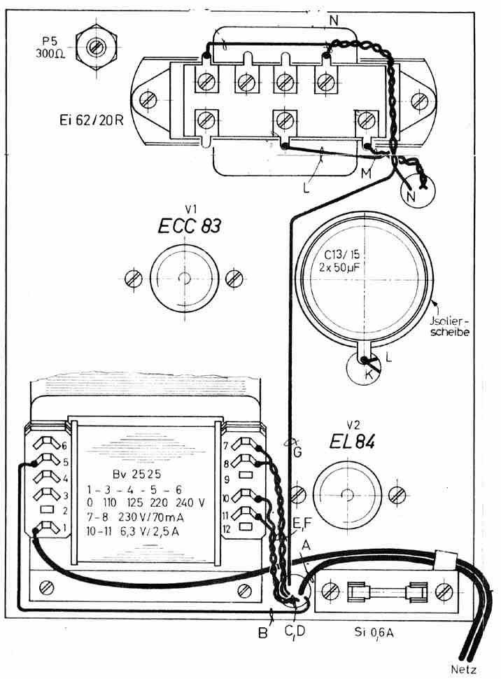 der Anodenwicklung des Bv 2525 zu vermeiden, wären die Kathodenwiderstände der beiden EL 84/V 2 (R 14) von 180 Ohm