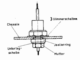 Die Betriebsbereitschaft des Gerätes wird durch ein 10 V Lämpchen angezeigt, welches von einer Heizwicklung