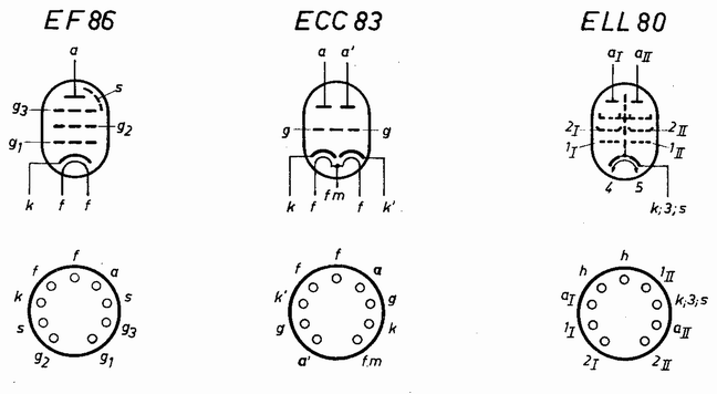 - 2 x EF 86, 4 x ECC 83, 2 x ELL 80,