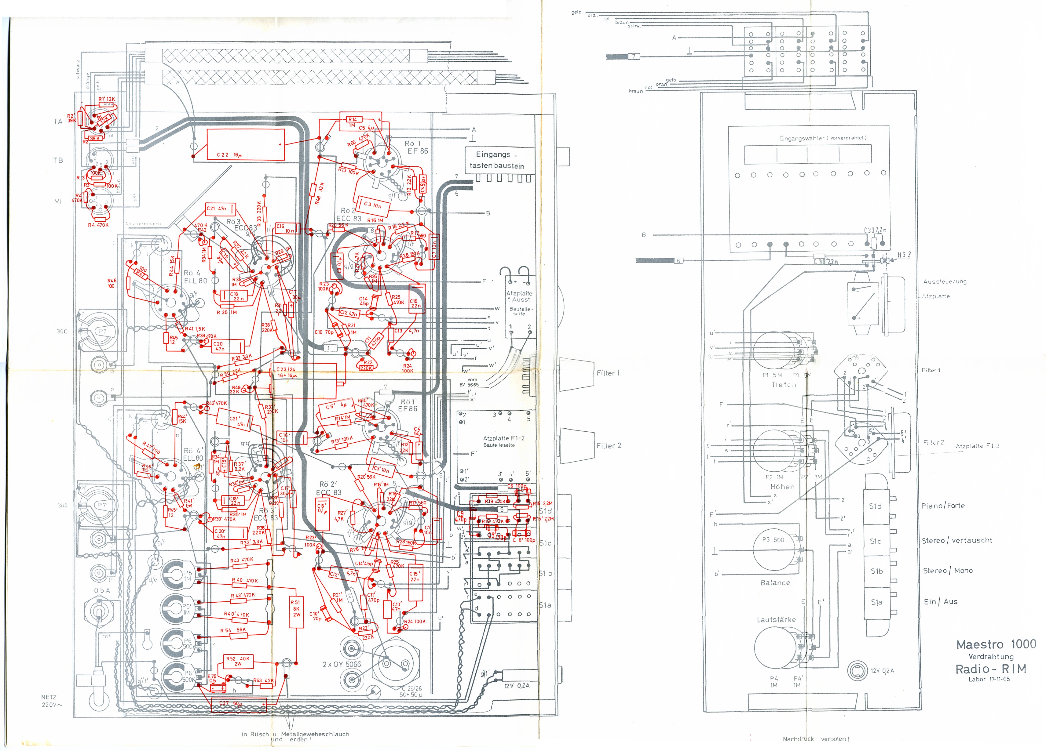 TA-Kristall, TA-magnet.-dynamisch, Tonband bzw. Rundfunk- und Mikrofon. Die vier Eingänge sind mit Hilfe des