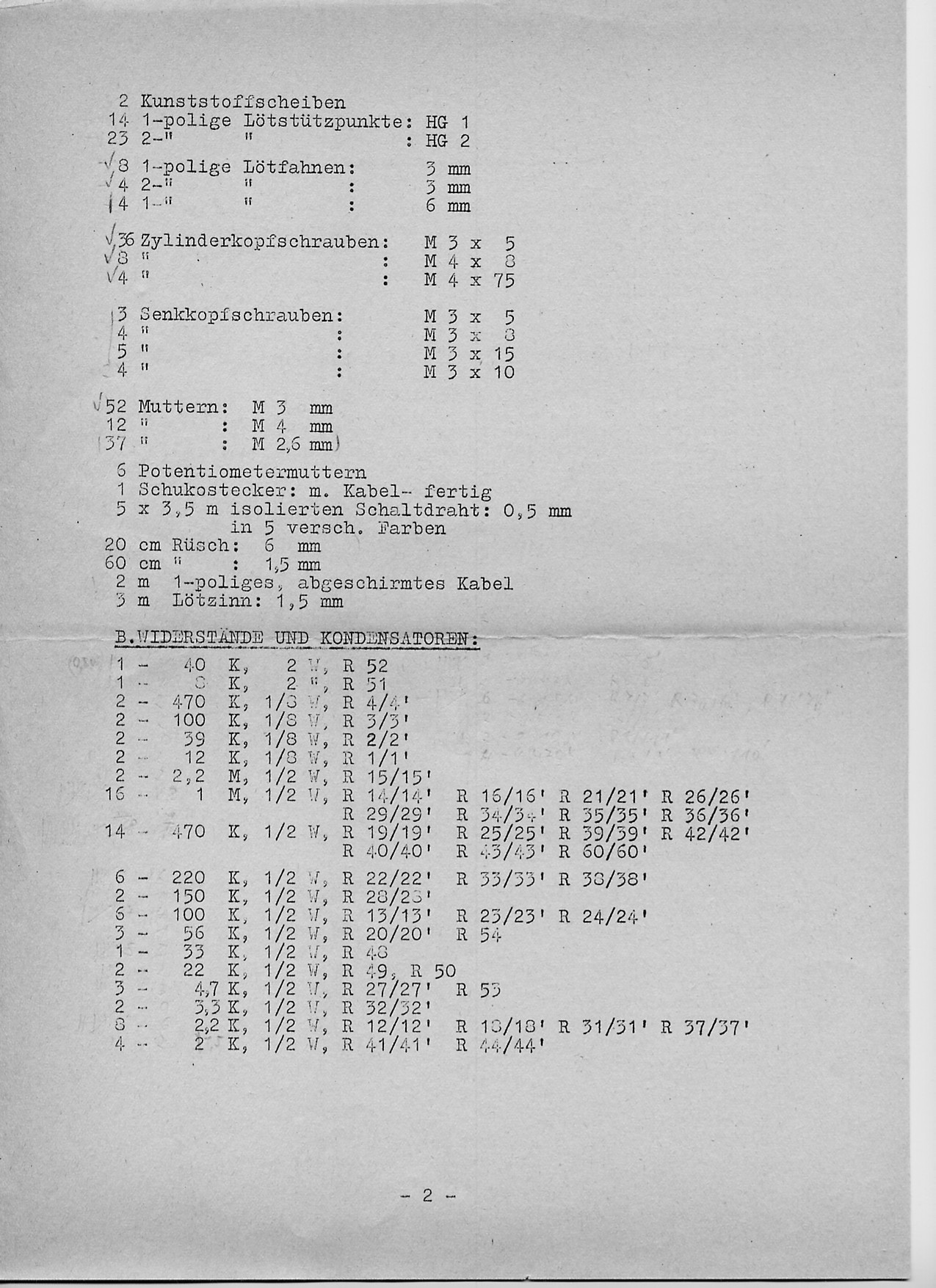 Da beide Verstärkerzüge dieselben elektr. Merkmale besitzen, bedarf es nur der Erläuterung eines