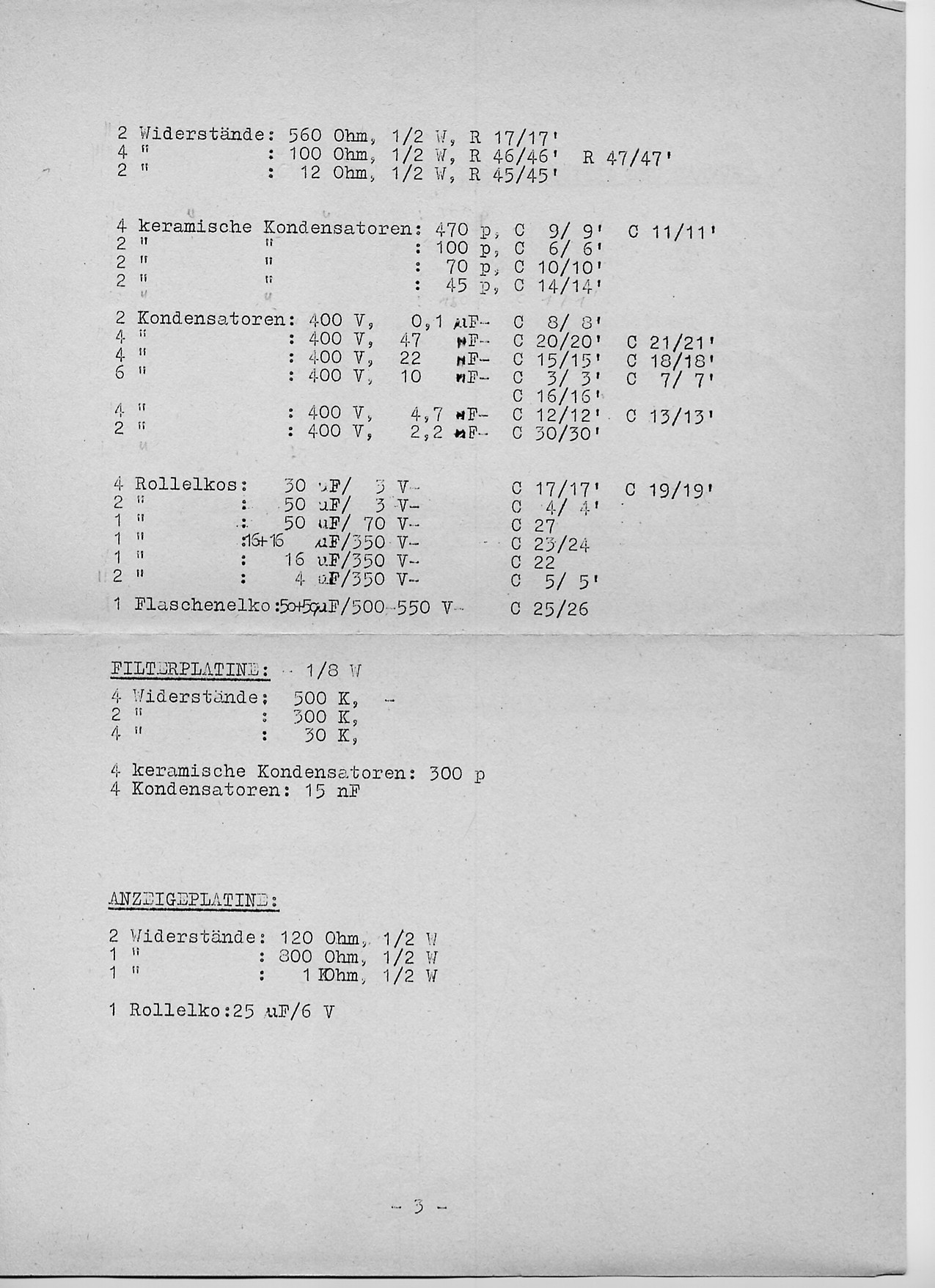 Heizspannungen. Zur Reduzierung der Netzteil-Innenwiderstände werden anstelle einer Gleichrichterröhre zwei teuere