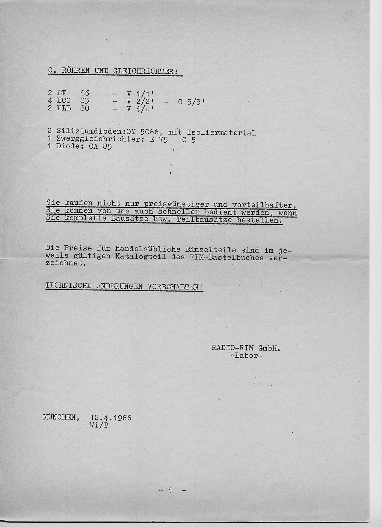Verstärkerröhre und liefert die Steuerspannung für ein Endpentodensystem von V 4.