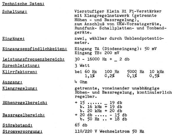 Kleinverstärker geschaffen. Die technischen Daten unseres "Musikus M" lassen bereits erkennen, daß