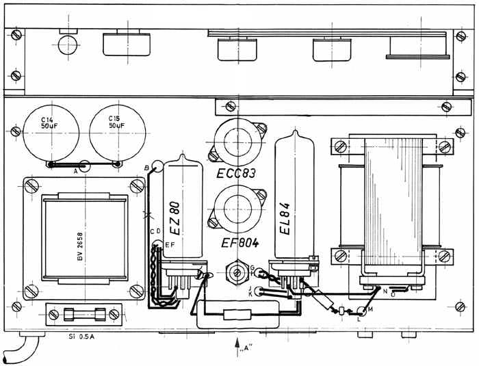 aufteilen in Klangregelstufe mit der Röhre ECC 83, Verstärkerstufe mit der Röhre EF 804, Endstufe mit der