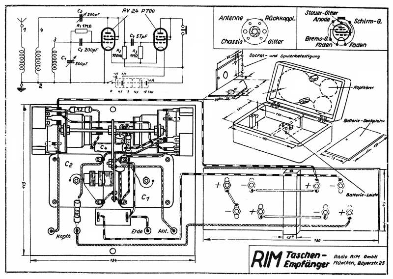 Mit zwei Militärröhren, der Pentode RL 2,4 P 700 - als Triode geschaltet - ist er ein hervorragender Empfänger.