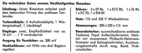 Echo-Nachhalleffekt eingestellt werden. Das endlose Tonband kann somit - je nach Stellung der drei Regler - bis an drei