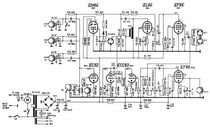 Das Schaltbild auch dieses Gerätes mußte ich sehr stark komprimieren, um die Seitenanzeige