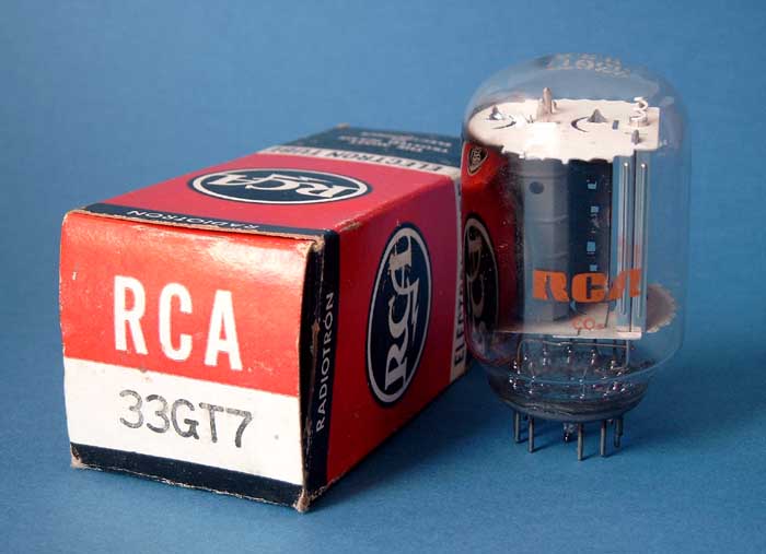 Die folgenden Bilder zeigen die Bamper-Diode (Booster-Diode) / Pentode (Beam-Power-Tetrode) 33GT7