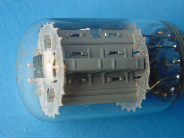 Von dieser Röhre gibt es zwei verschiedene Versionen, deren einziger Unterschied das Gitterableitblech ist :