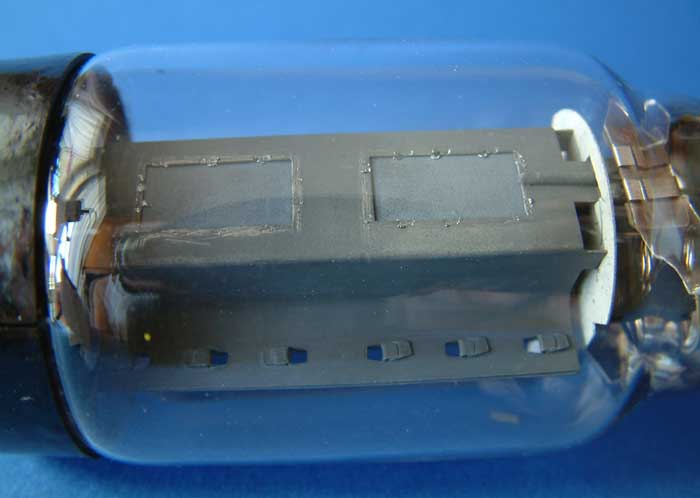 An diesem Modell wurden Kennlinien-Versuche unternommen, wie sich die Röhre bei geschlossenen Anodenfenstern