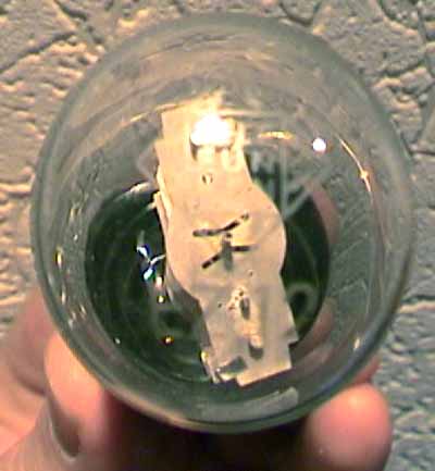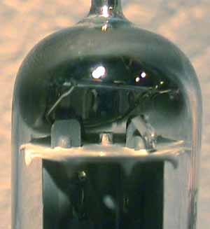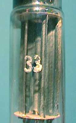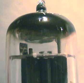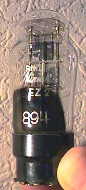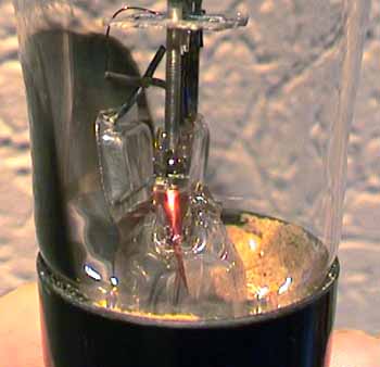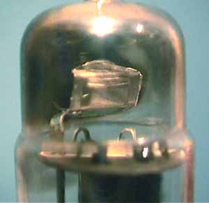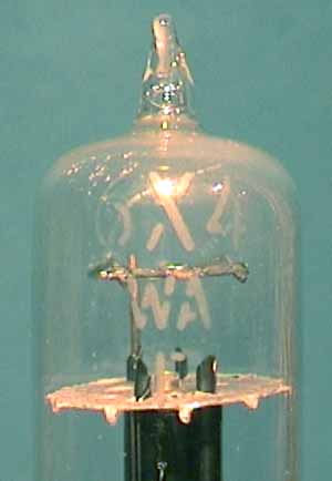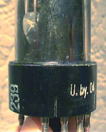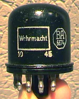 1949 hergestellt. Die im Glaskolben eingepresste Verengung sollte den Metallkragen aufnehmen - zu dieser Zeit wurden die
