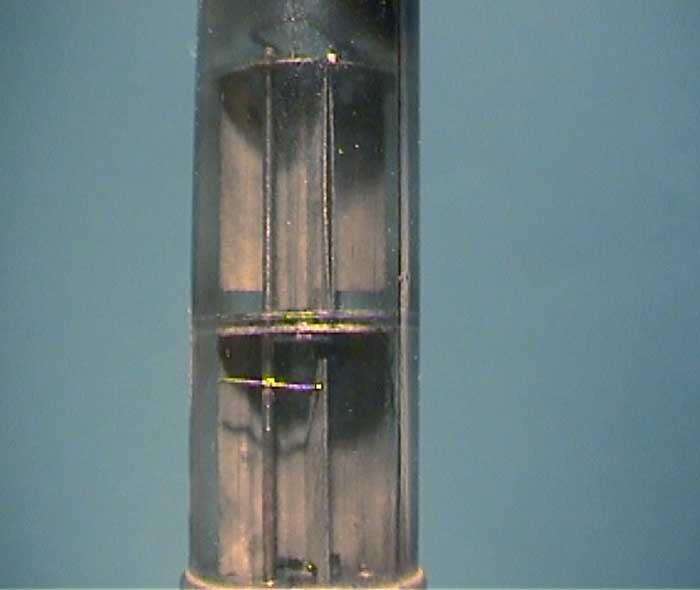 Die Anodenbleche stehen nicht, wie üblich, im 90-Grad-Winkel zueinander, sondern in einem engen Winkel. Dieses
