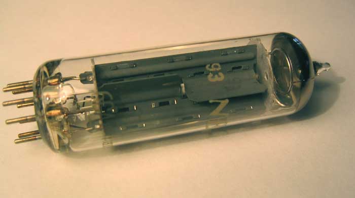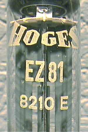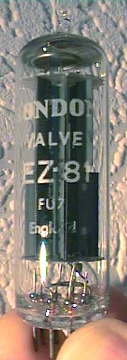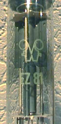 Die folgende Mullard-EZ 81 zeigt eine gelbe Beschriftung, wie sie für ausgesuchte Langlebe- (Mil.-) Röhren