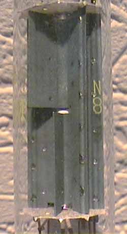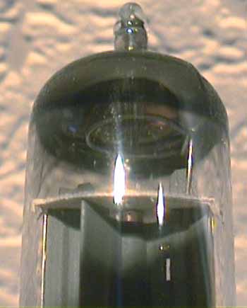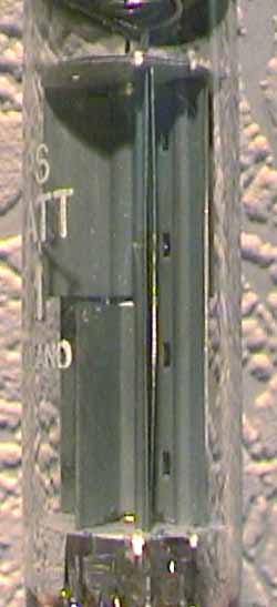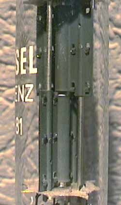 Die zweite EZ 81 hat nur an einer Seite des Getter-Rings eine gerade, der Rest des Rings ist normal rund ausgeführt.