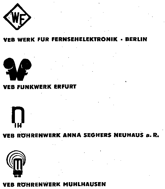 Die folgenden Skizzen zeigen die verschiedenen Röhren-Logos der DDR-Röhrenwerke, die unter dem Sammelbegriff
