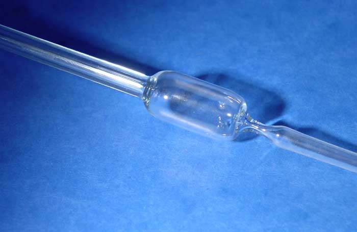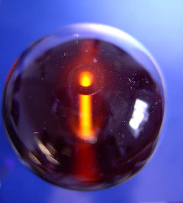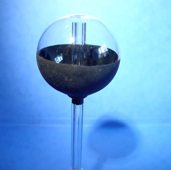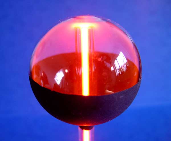 Zur besseren Erkennbarkeit - auch bei Sonnenlicht - besitzt sie ein Kapillarrohr und einen schwarzen Kontrastschirm (Kugel