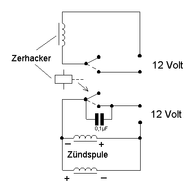 Wichtig: Niemals den Funkenlösch-Kondensator vergessen (0,1 µF) - es kann der am Zündverteiler sitzende Verwendung