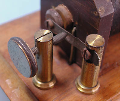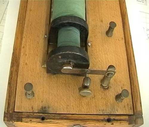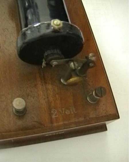 folgenden Bild einer Original Rühmkorff-Induktionsspule erkennt man ihn an der rechten Spulenseite.