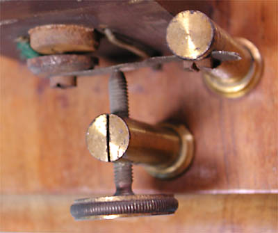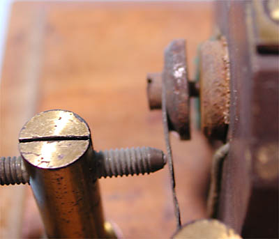 Die Stellschraube, betätigt durch den Knopf von der Oberseite des Gerätes, drückt beim hereindrehen gegen
