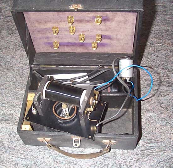 Die folgenden Fotos zeigen ein so benanntes 'Elektrisiergerät'. Hier wird der Wirkungsgrad der Induktionsspule - und