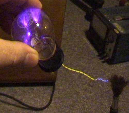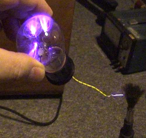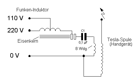 Tesla-Spule zugeführt, welche in einem kleineren Handgerät untergebracht war. Diese Spule erzeugte dann eine