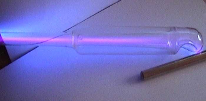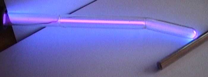 Hochspannung kommt hier nicht zum äusseren Glasrohr. - Und dann das abgeknickte Ende?