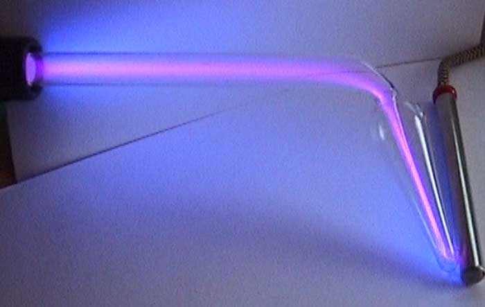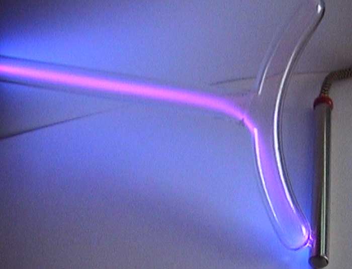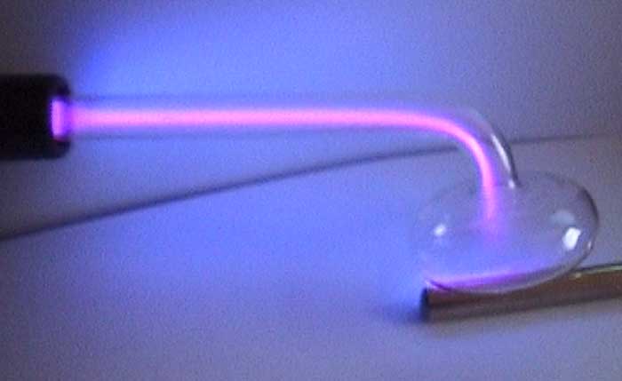 Elektronen enthalten. Der Ladungsträger (hier ein leitendes Plasma) wird im verminderten Luftdruck der Röhre durch
