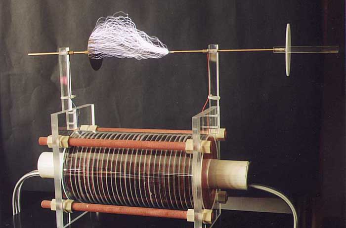 die Hochspannungs-Erzeugung. Seine Spule wurde genutzt zur Erzeugung von Hochspannung in elektrischen Experimenten. In den