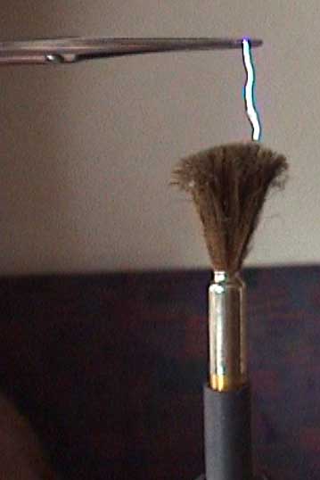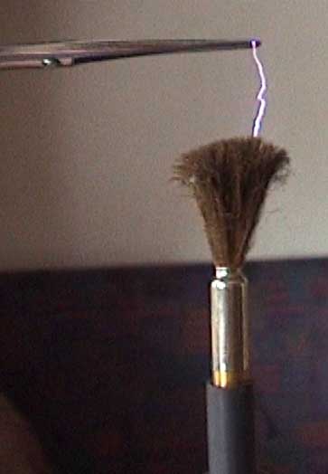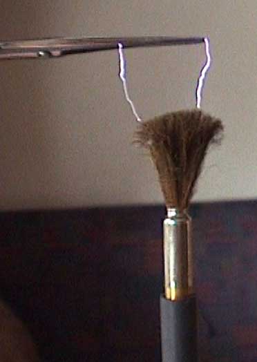 Deutlich sind die Funken zu erkennen, die aus dem Glas zum Metallstift fliegen: