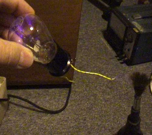 über die Gleichrichterschaltung. Ist diese Last zu gering (das ist sie ohne Bildröhre meistens), können